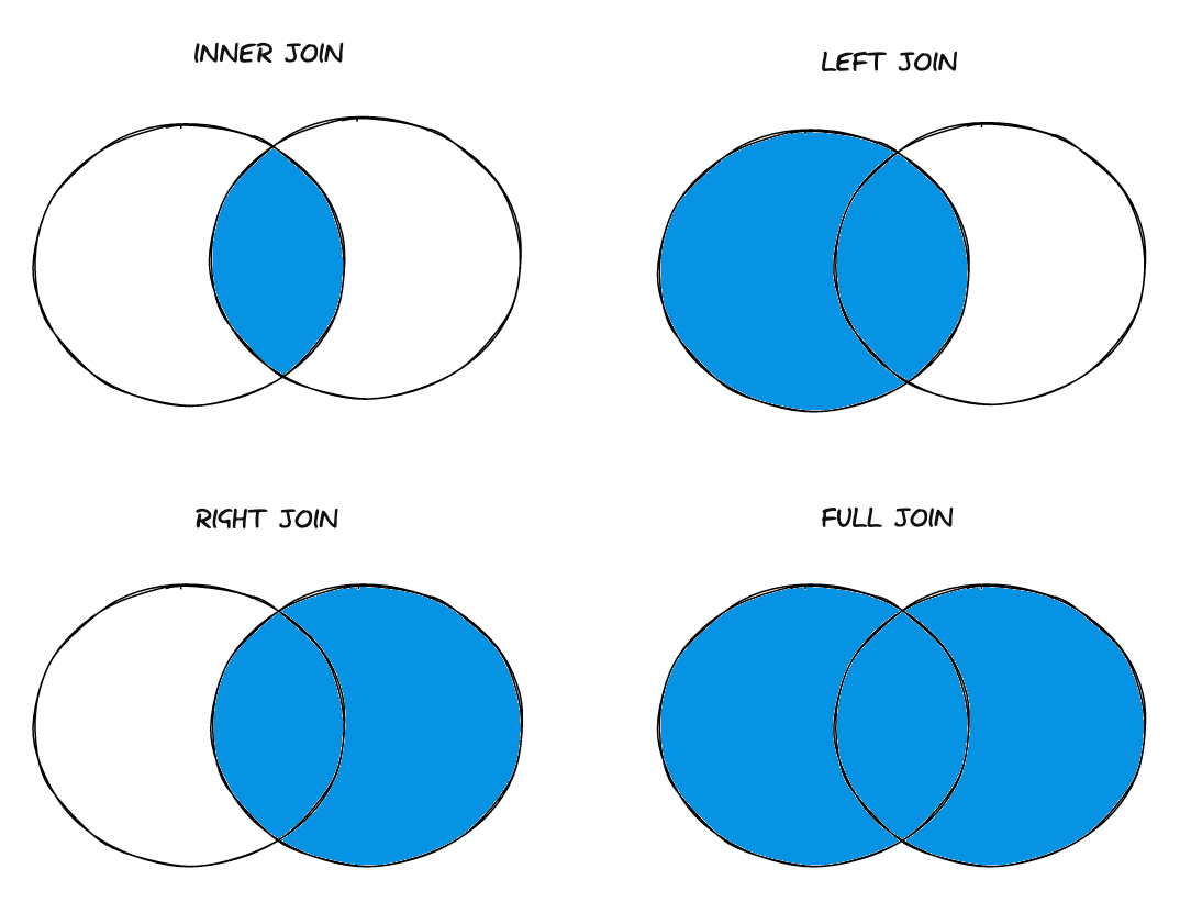A common (but disputed) way of visualising JOINs is with Venn diagrams: